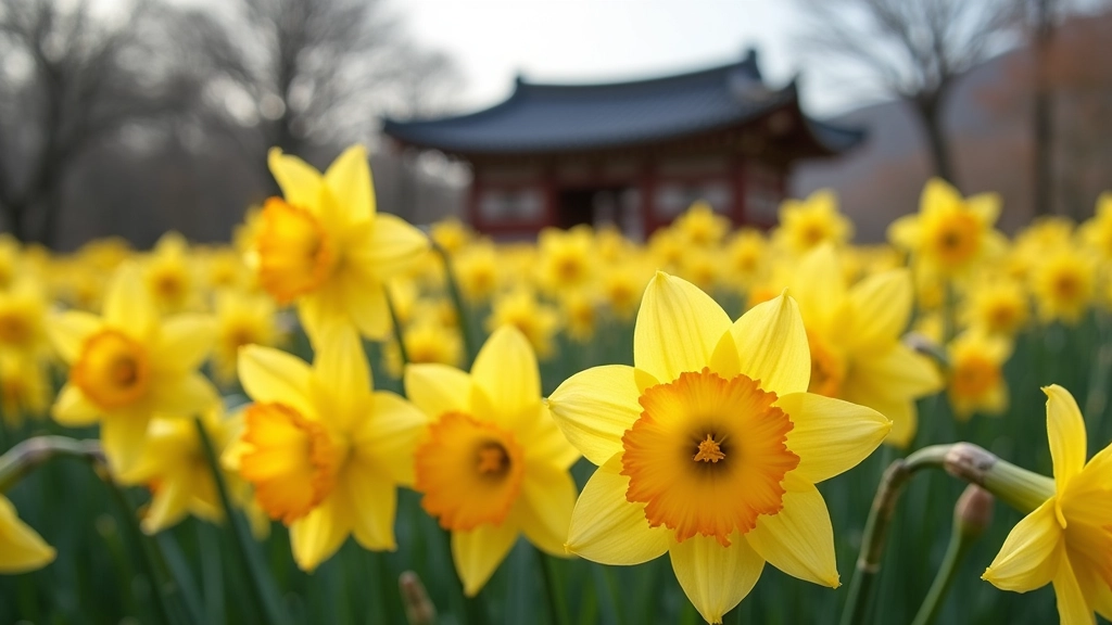 봄 축제의 상징으로 자리 잡은 수선화는 그 노란색 꽃잎으로 보는 이의 마음을 사로잡습니다. 이곳에서 자연의 생명력을 느끼며, 봄의 시작을 만끽하는 특별한 시간을 가질 수 있습니다.
