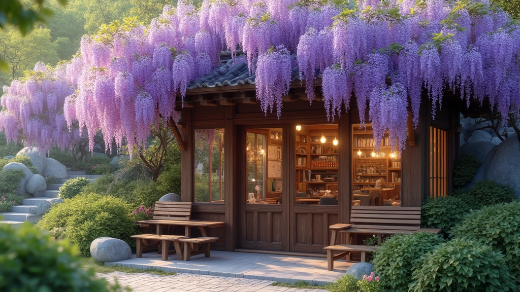 위스테리아 카페의 정원은 특히 5월에 방문객들로 붐비는 장소입니다. 이 시기에는 등나무꽃이 만개하여, 자연광을 활용한 사진 촬영에 최적의 환경을 제공합니다. 꽃의 아름다움과 함께 자연광이 어우러지면, 생동감 넘치는 사진을 남길 수 있습니다. 카페 내부는 아늑한 분위기로 가득 차 있으며, 감성적인 포토존이 곳곳에 마련되어 있습니다. 따뜻한 조명과 편안한 인테리어가 조화를 이루어, 방문객들은 이곳에서 특별한 순간을 사진으로 담을 수 있습니다. 특히, 다양한 소품과 배경이 마련되어 있어 독창적인 사진을 찍기에 안성맞춤입니다.